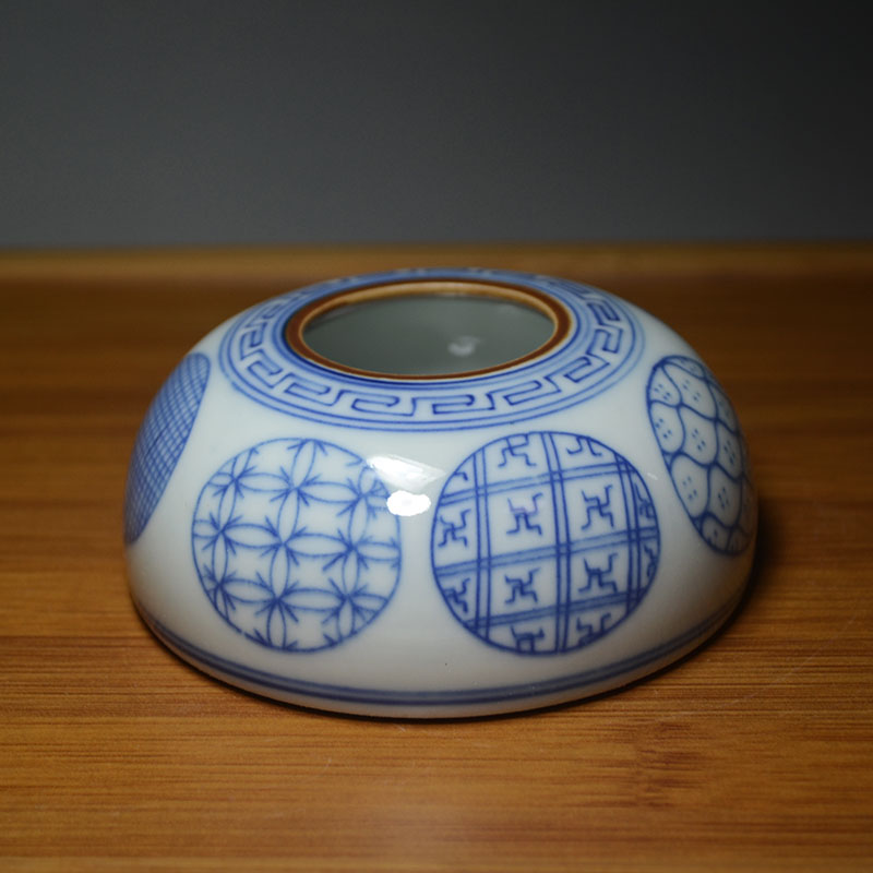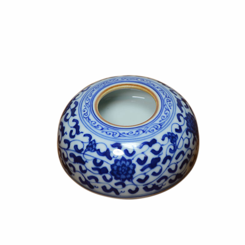 未央坊青花缠枝笔洗 陶瓷小水盂水丞文房书画用品景德镇仿古摆件