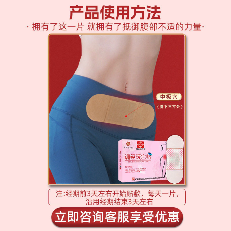 白云山调暖经宫贴经期不适艾草暖身贴益母草热敷发热贴红花通经贴