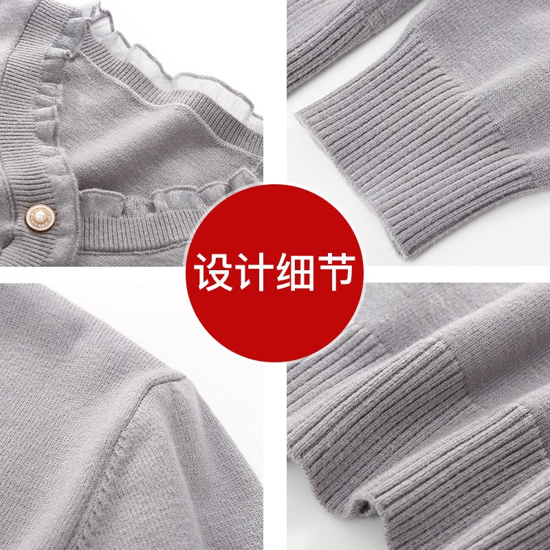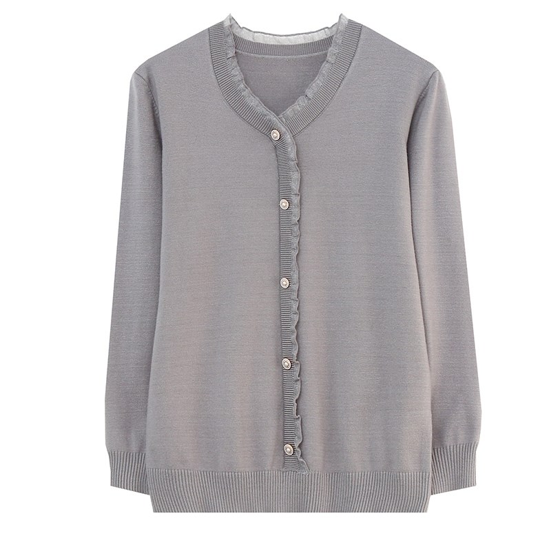 妈妈洋气大码针织上衣中年女春装薄款毛衣中老年春秋花边领打底衫