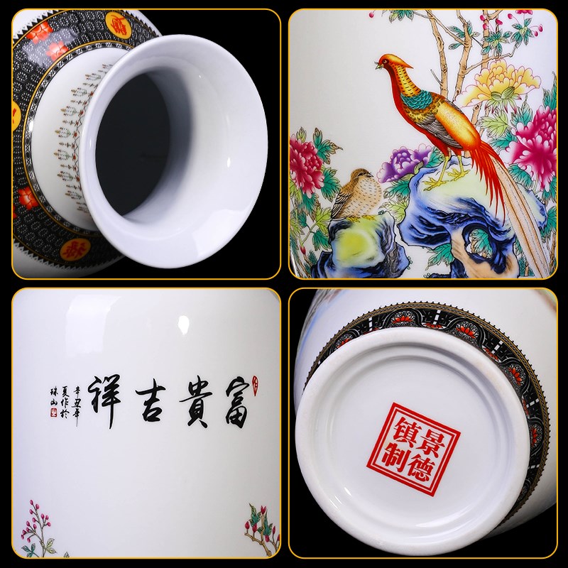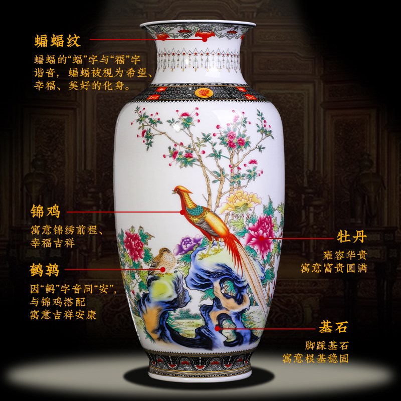 景德镇陶瓷器富贵竹花瓶摆件新中式客厅插花玄关电视柜家居装饰品