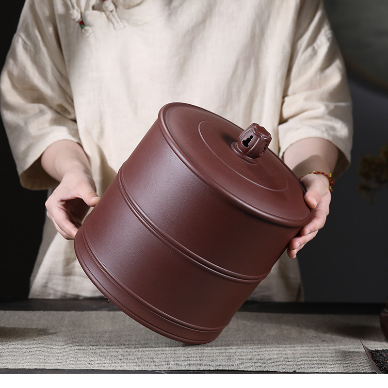92年宜兴老紫泥紫砂罐手工名家七子饼茶叶罐散茶储存透气闭光