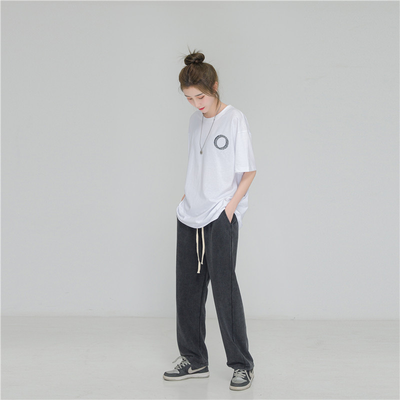 VTPS国潮情侣高街垂坠水洗做旧炒雪花阔腿直筒宽松休闲抽绳裤男女