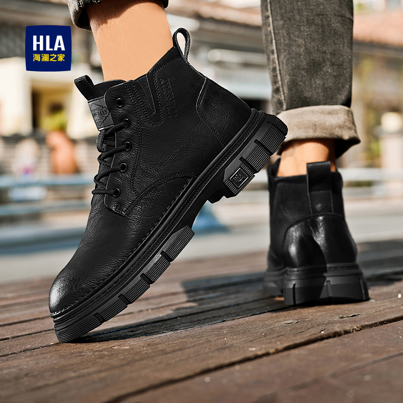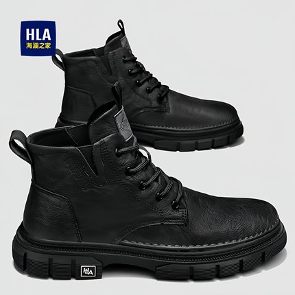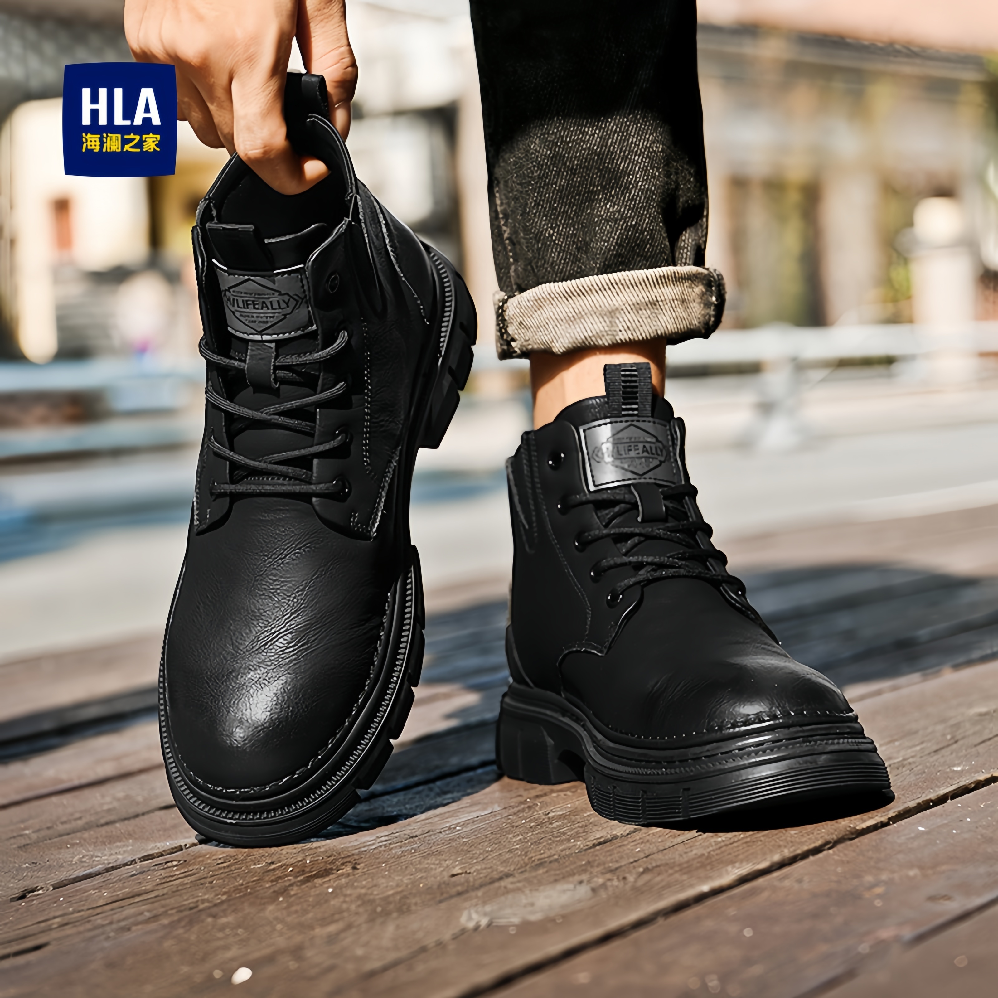 海澜之家男鞋黑色马丁靴2025新款秋冬季高帮工装鞋英伦风中帮皮鞋