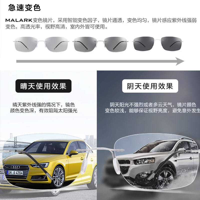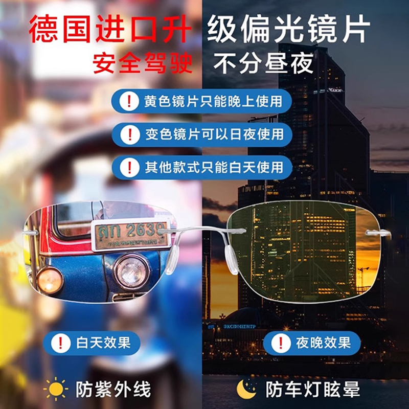 德国进口日夜两用偏光太阳眼镜男士开车专用超轻无框变色墨镜女潮