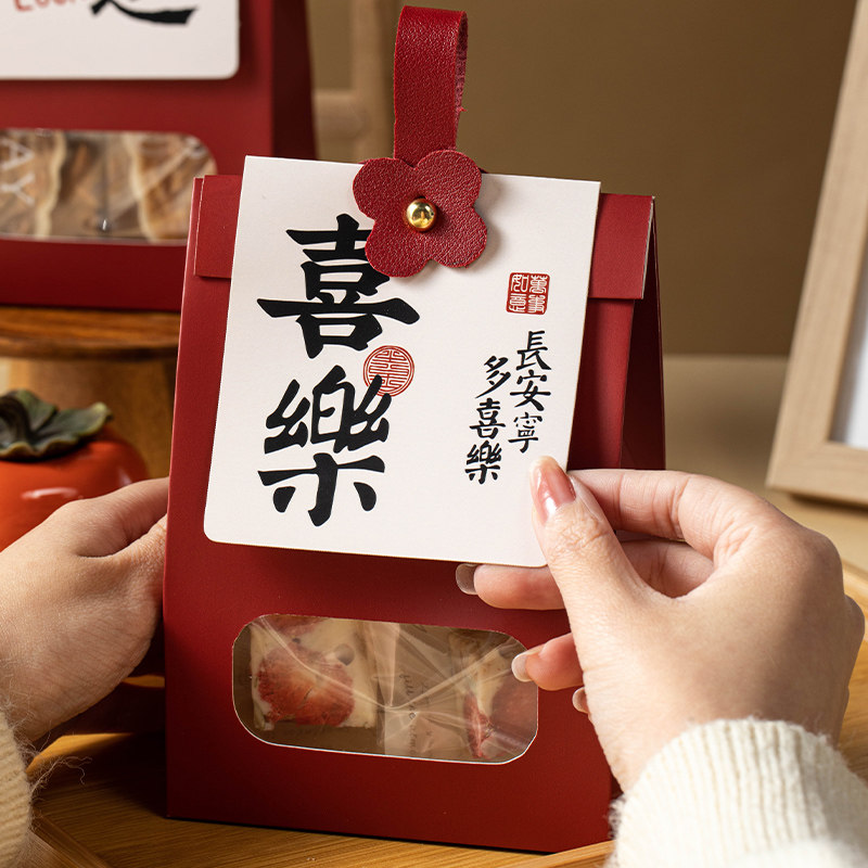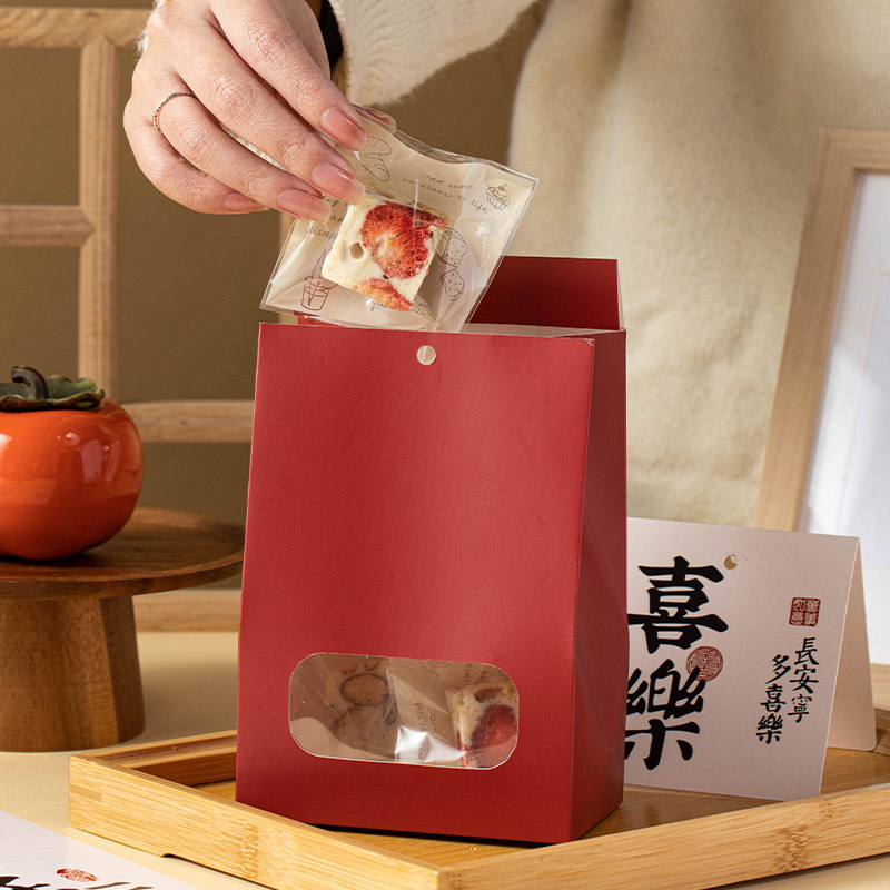 雪花酥开窗手提自立袋包装牛轧糖太妃烘焙送礼新年款曲奇饼干打包