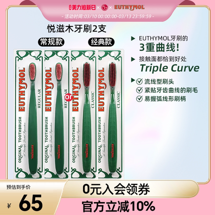 山姆同款EUTHYMOL/悦滋木英国品牌进口经典手动软毛牙刷柔刷头2支