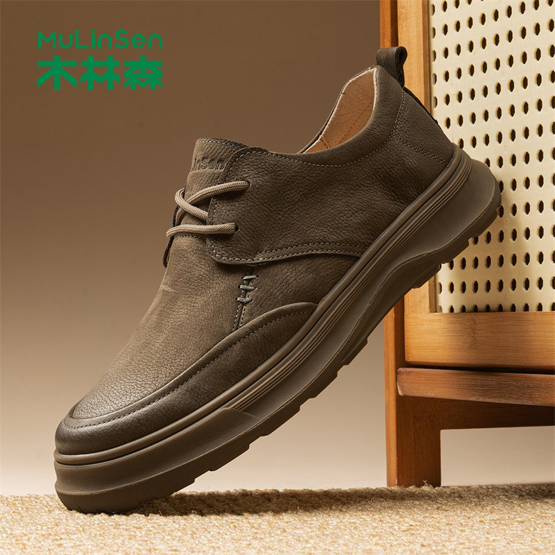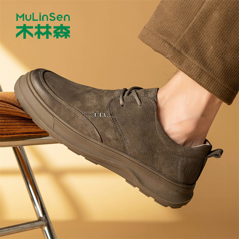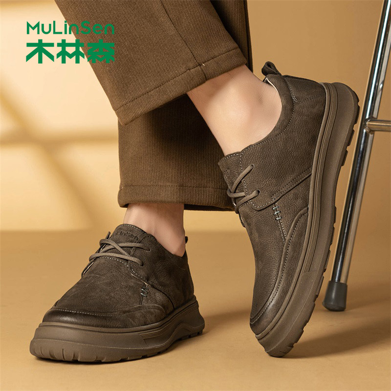 木林森头层牛皮男鞋秋季新款工装复古休闲皮鞋男工作软底板鞋冬季