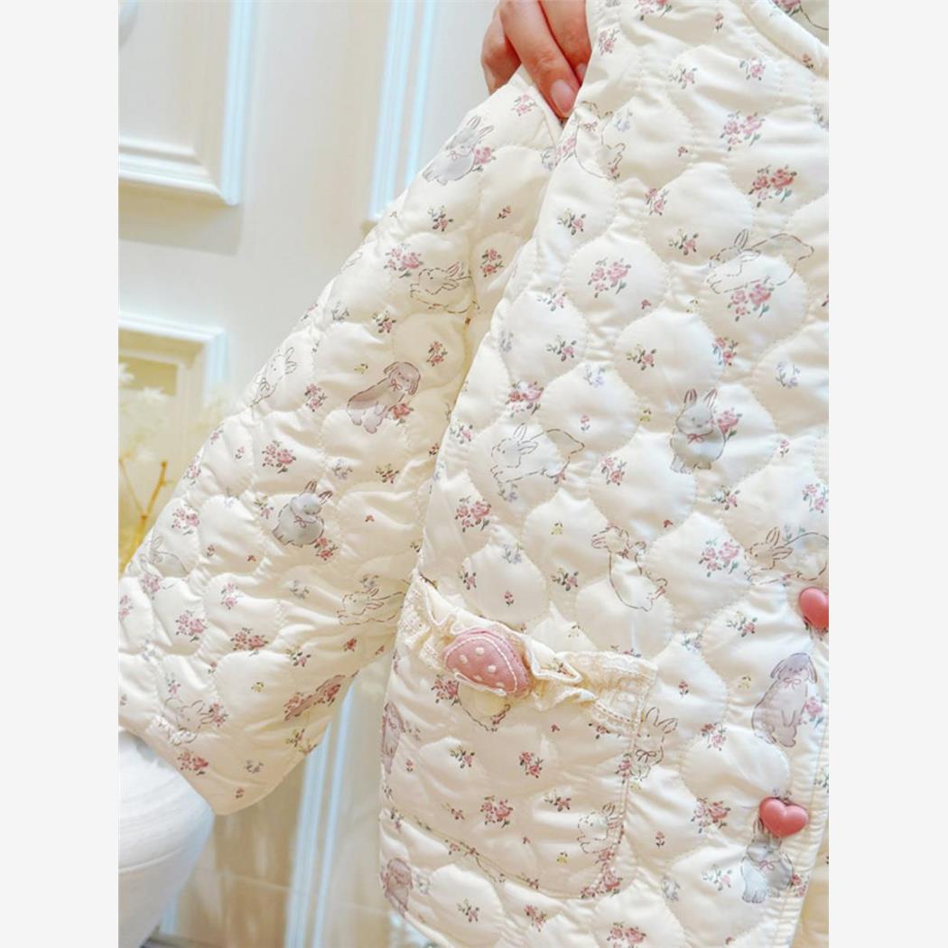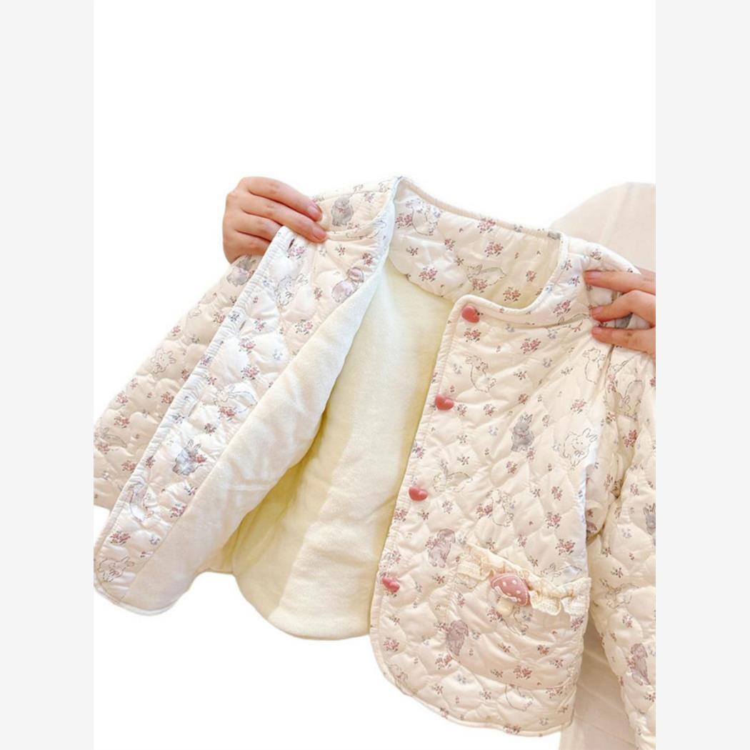 女童秋冬季加绒加厚棉服宝宝保暖棉袄儿童碎花上衣外套洋气冬装潮