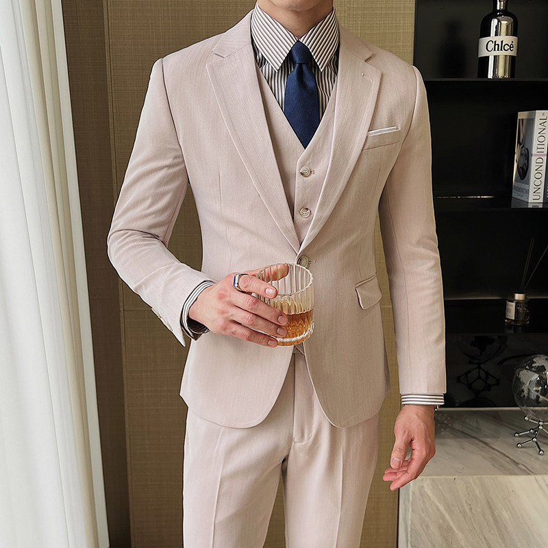 小清新奶绿色西服男上衣春秋2025年英伦风修身垂感痞帅西装男套装