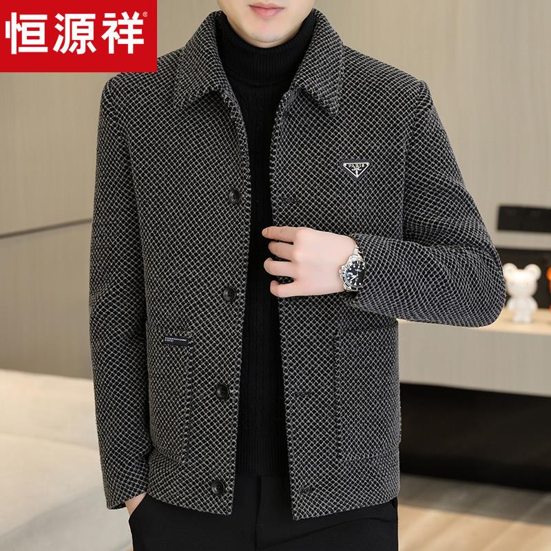 恒源祥男士秋冬季新款毛呢大衣男夹克金貂绒加绒加厚翻领短款外套