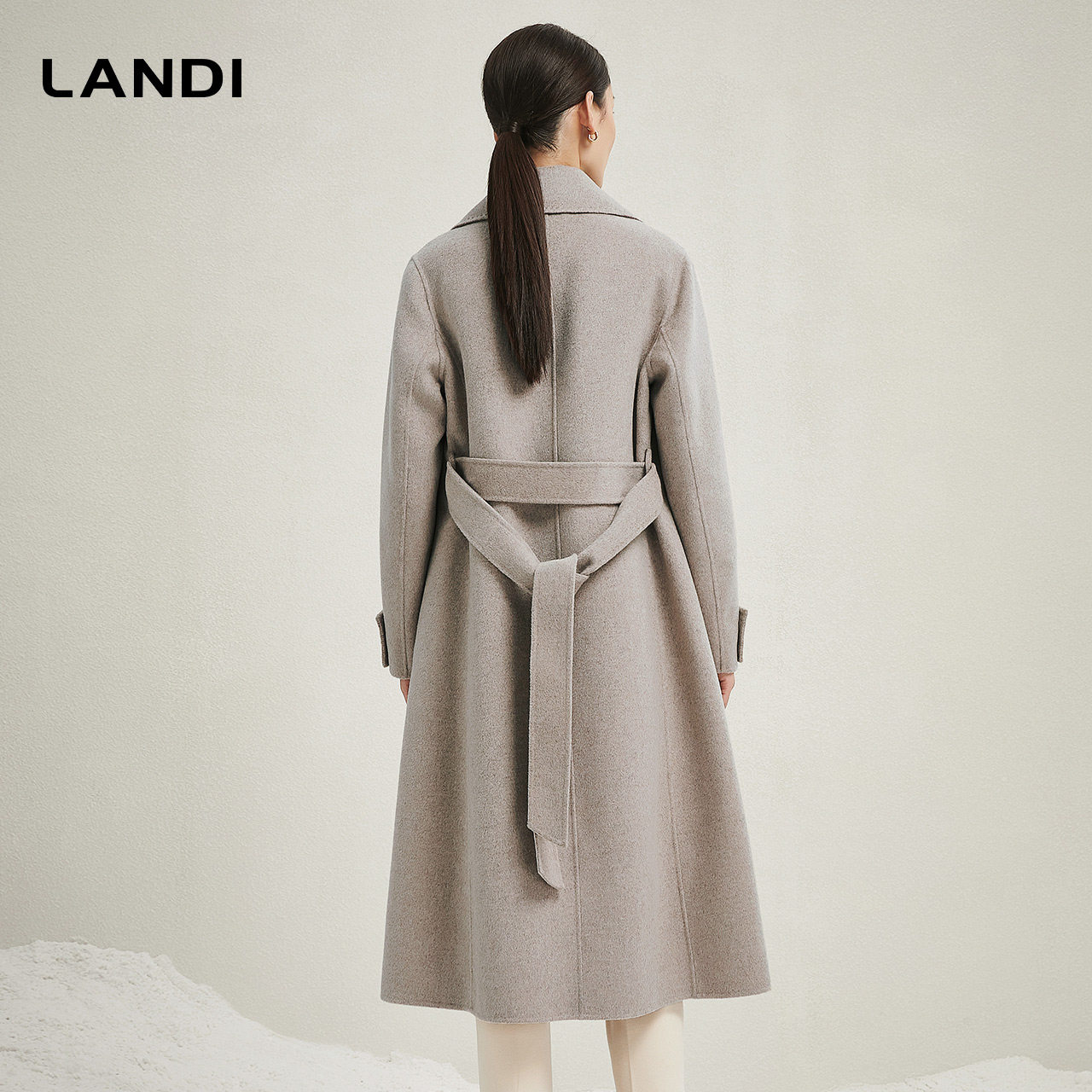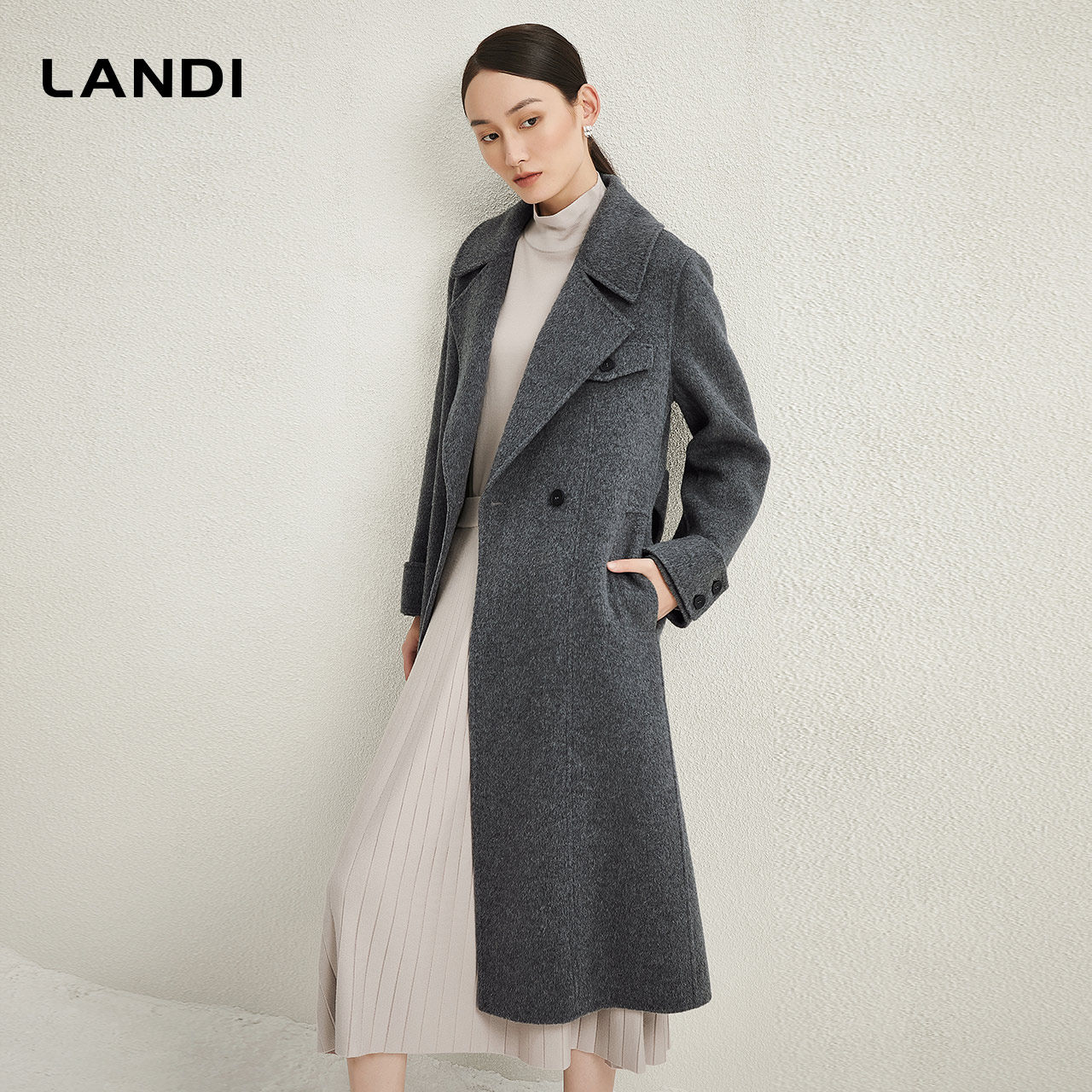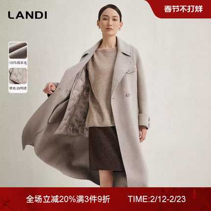 [可拆卸羽绒内胆]LANDI蓝地长款羊毛大衣女双面毛呢外套冬新品