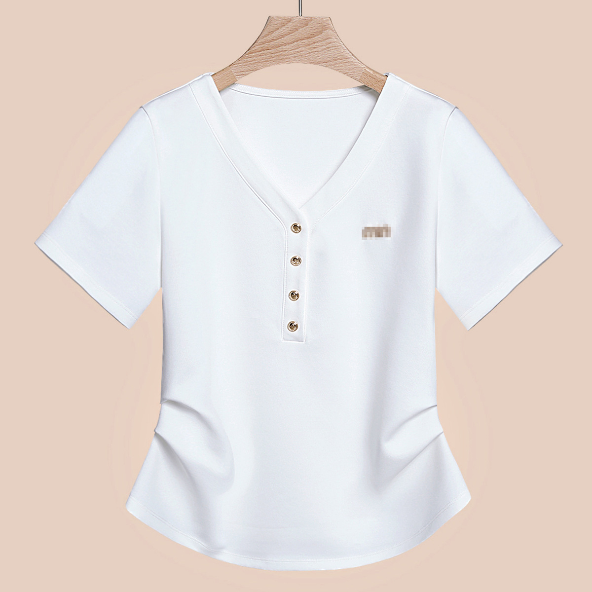 2025新款女装夏季白色短袖t恤女v领修身显瘦正肩大码宽松体恤上衣