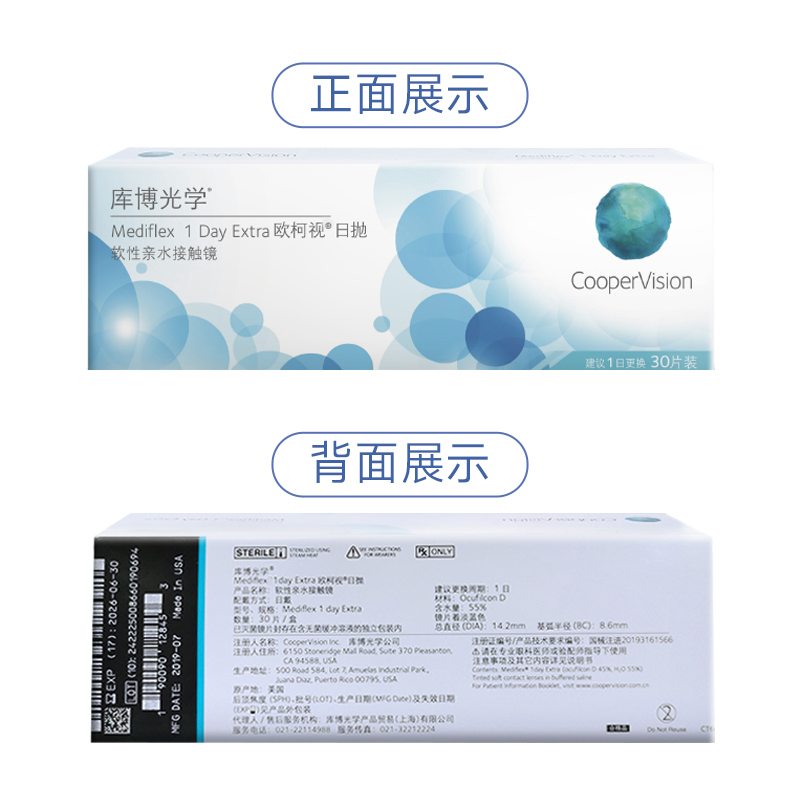 库博光学欧柯视日抛30片进口天天抛透明隐形近视眼镜旗舰店正品