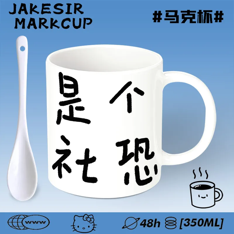 希望你快乐搞怪治愈文字陶瓷喝水杯马克杯办公室家用喝水杯咖啡杯