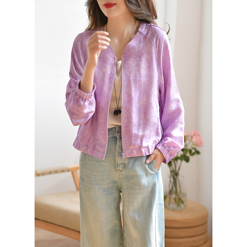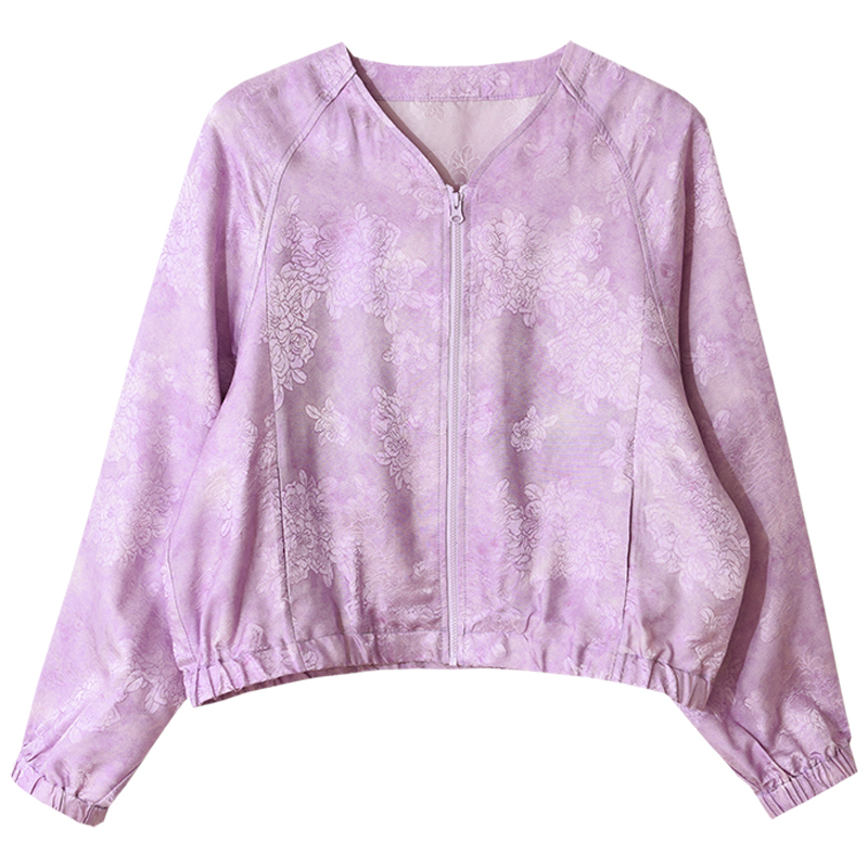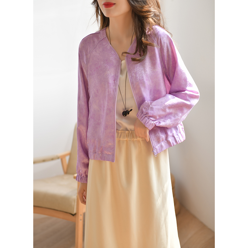 GESGOO原创设计短款外套女春季防晒小众提花拉链开衫上衣含桑蚕丝