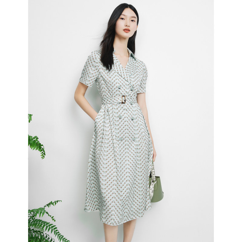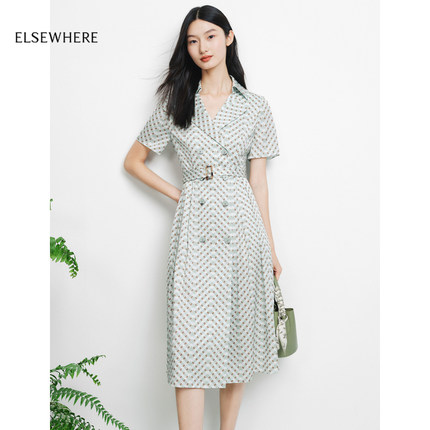 ELSEWHERE珂思【商场同款】法式格子西装连衣裙女装夏季新款