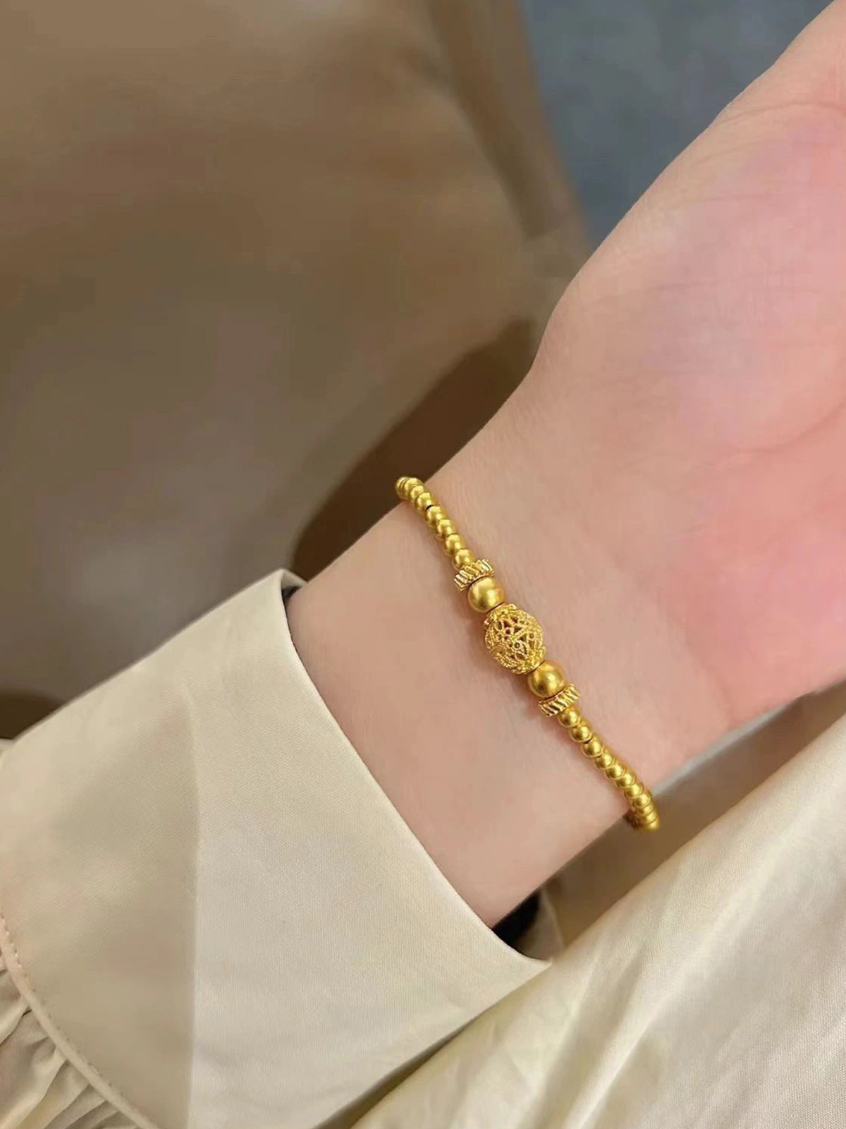 周大福代购 传承系列足金花丝单圈小圆珠古法黄金手链计价F228517