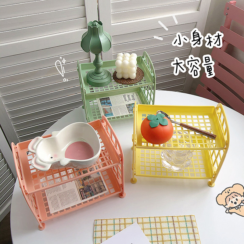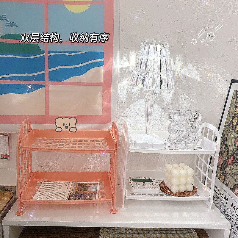 ins双层桌面置物架收纳盒化妆品学生宿舍神器办公室书桌上收纳架