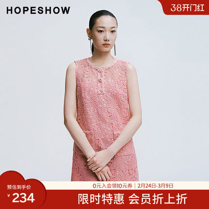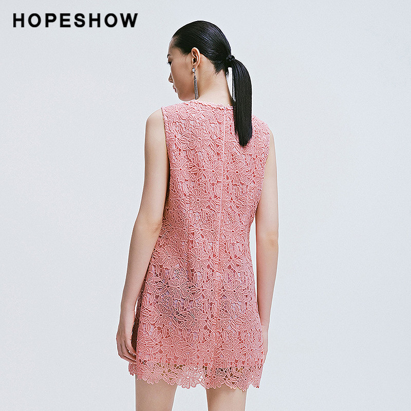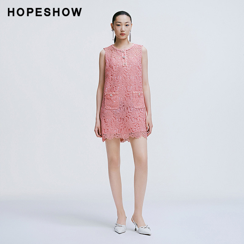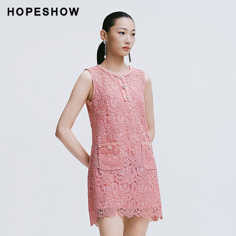 【会员专享】红袖2025春季新款女装香风蕾丝边套头背心连衣裙
