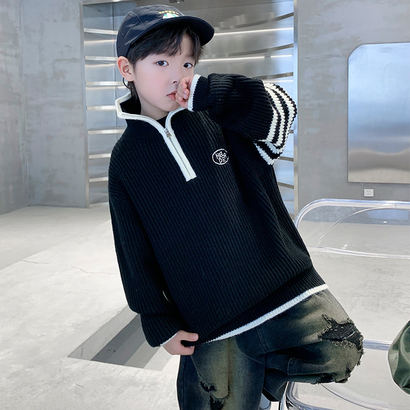 儿童装男童毛衣秋冬款2025新款中大童针织高领打底衫套头白色