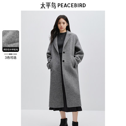 太平鸟大师羊驼毛廓形双面呢大衣女灰色冬新款呢子外套女