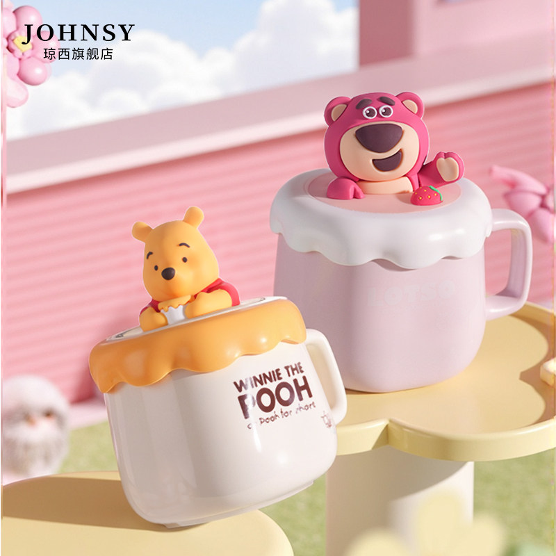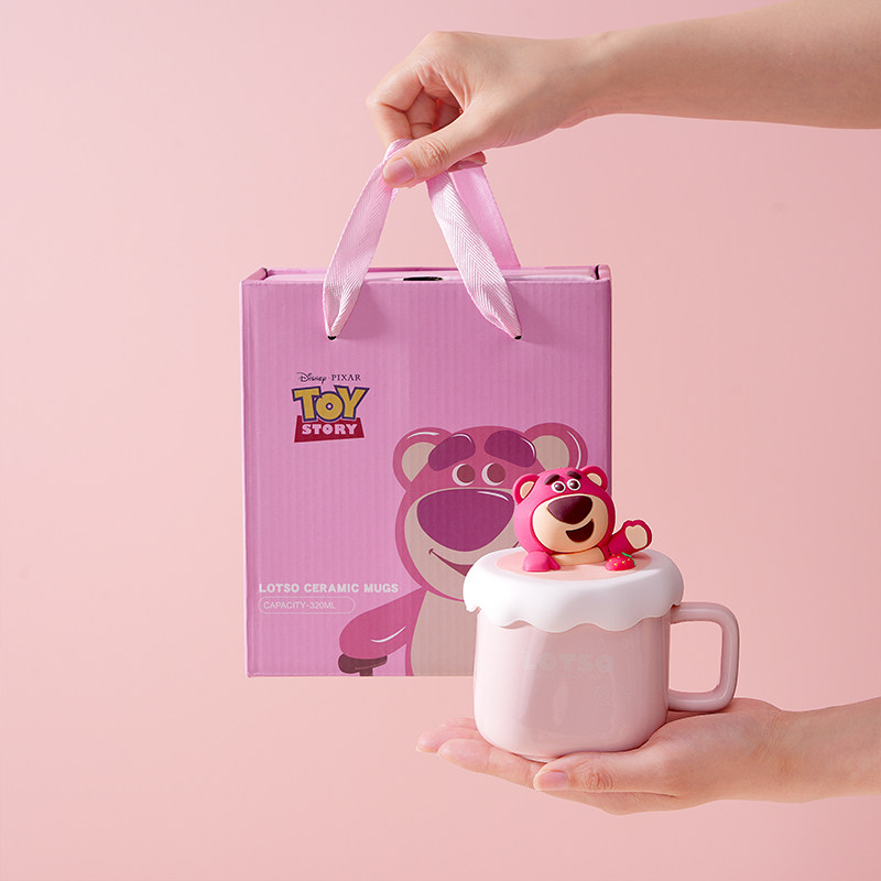 迪士尼草莓熊咖啡陶瓷马克杯子女喝水牛奶茶杯生日礼物