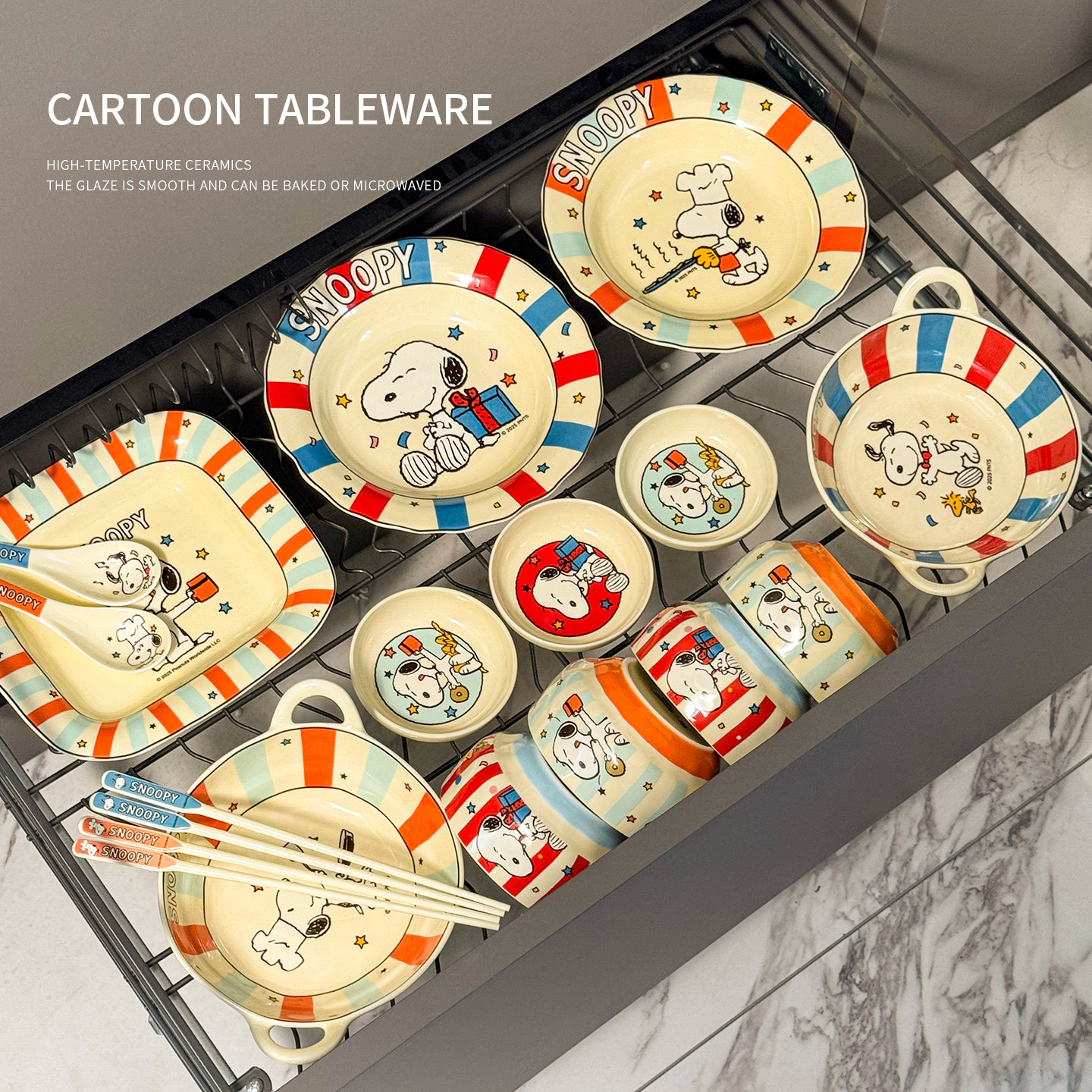 史努比红色新款陶瓷碗筷餐具套装饭碗碟子菜盘一人食礼盒装伴手礼