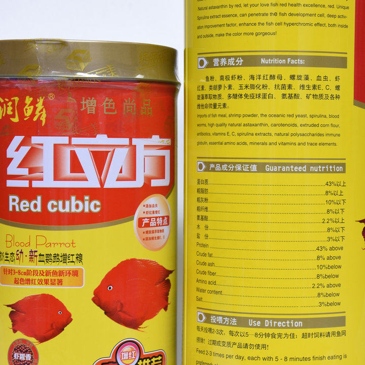 大促正品红立方拟生态增红血鹦鹉鱼粮 红鹦鹉鱼饲料 鱼食包邮中粒