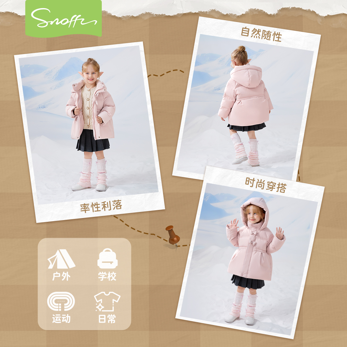 斯纳菲女童羽绒服2025冬季新款商场同款白鸭绒加厚保暖外套冬装服