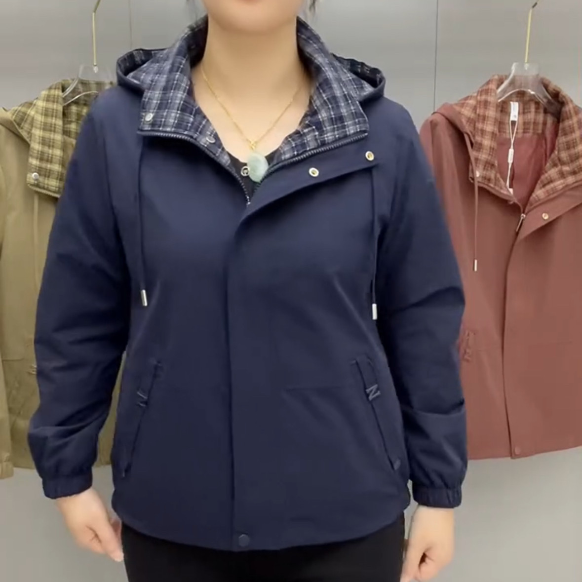 25年春秋新款中年女装洋气妈妈装短款上衣减龄大码女外套帽款风衣