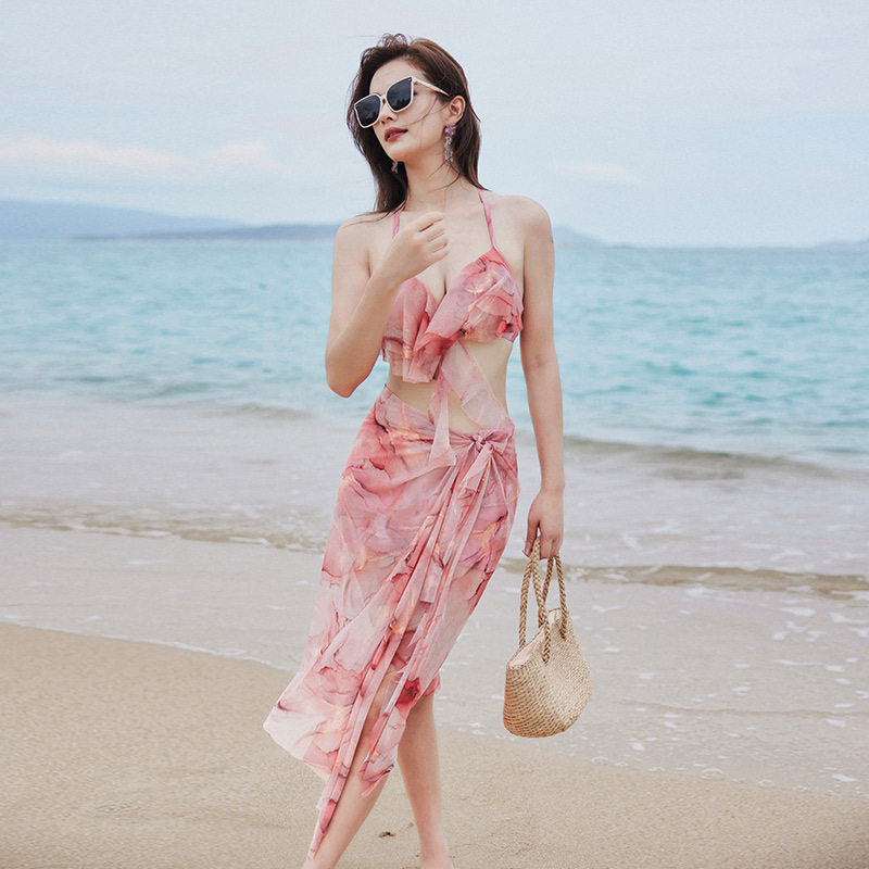 2024新款游泳衣女分体式三件套遮肚显瘦聚拢小胸韩国ins风泡温泉