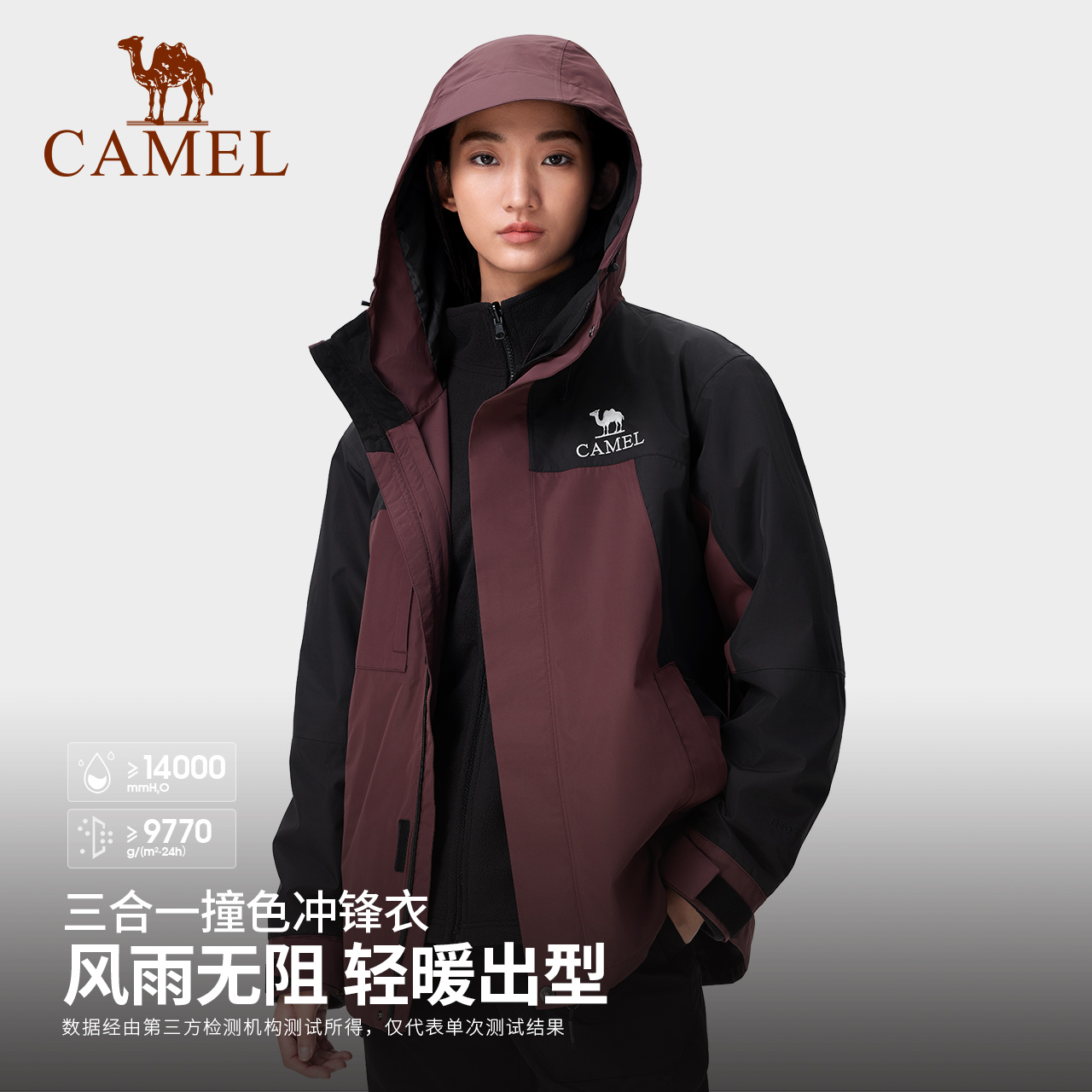 骆驼三合一撞色冲锋衣可拆卸两件套户外暴雨级防风防水旅游登山服