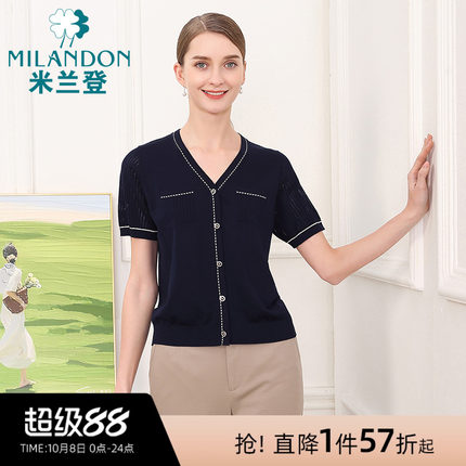 米兰登妈妈装夏装2024新款中老年女装薄款短袖t恤女休闲针织上衣