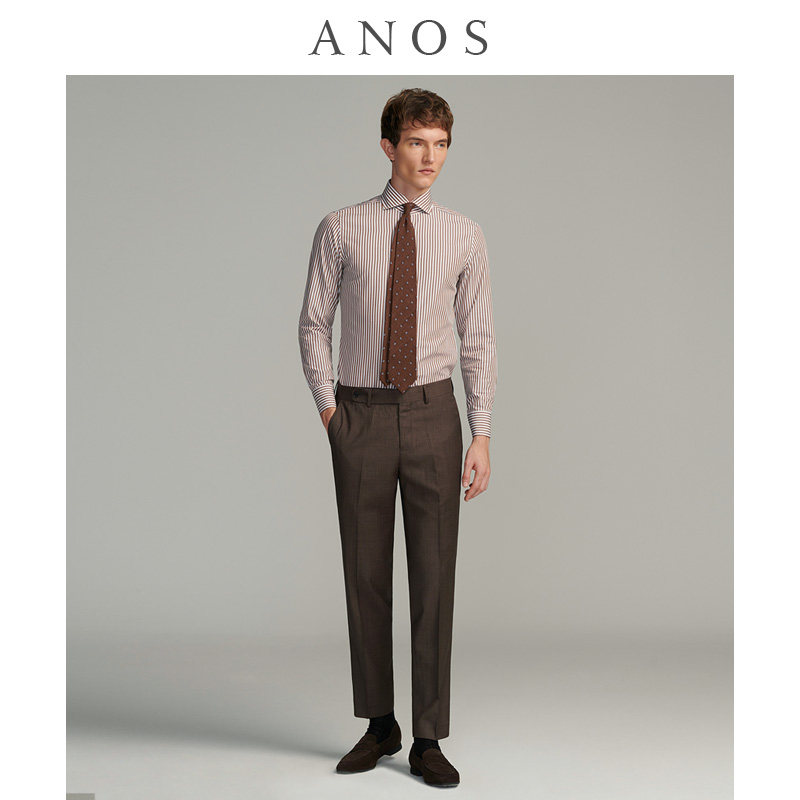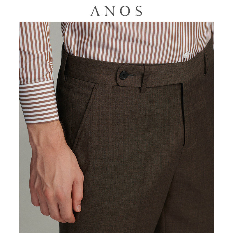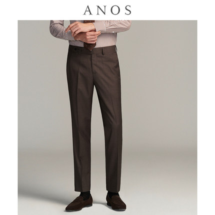 秋季深咖色休闲修身西裤ANOS细纹