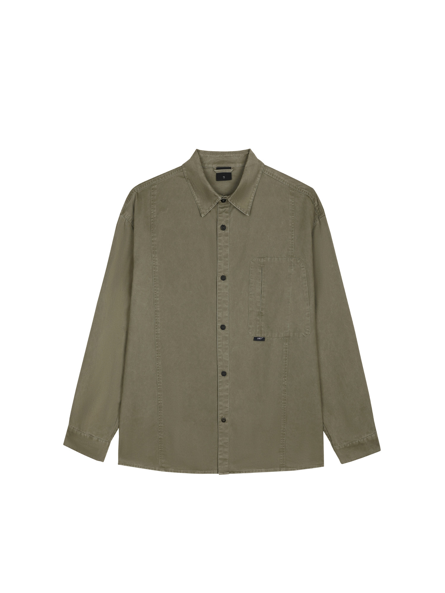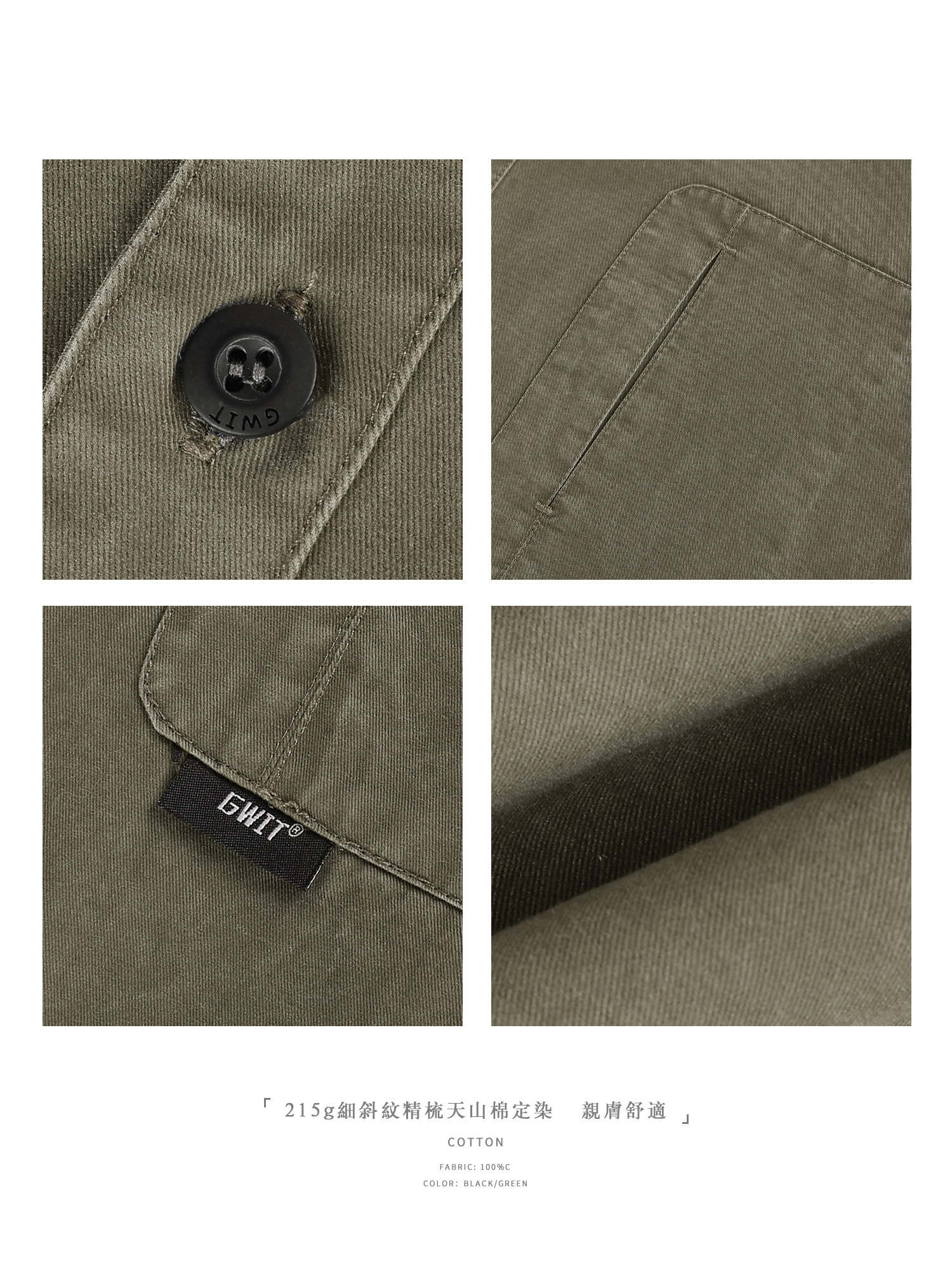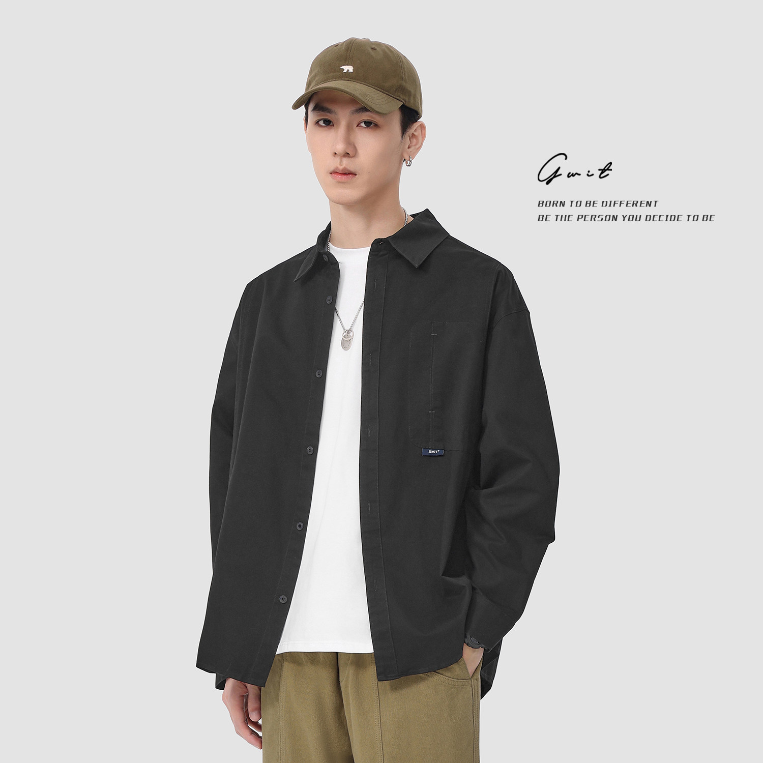 GWIT 美式复古重磅水洗做旧春秋寸衫外套长袖衬衣上衣工装衬衫男