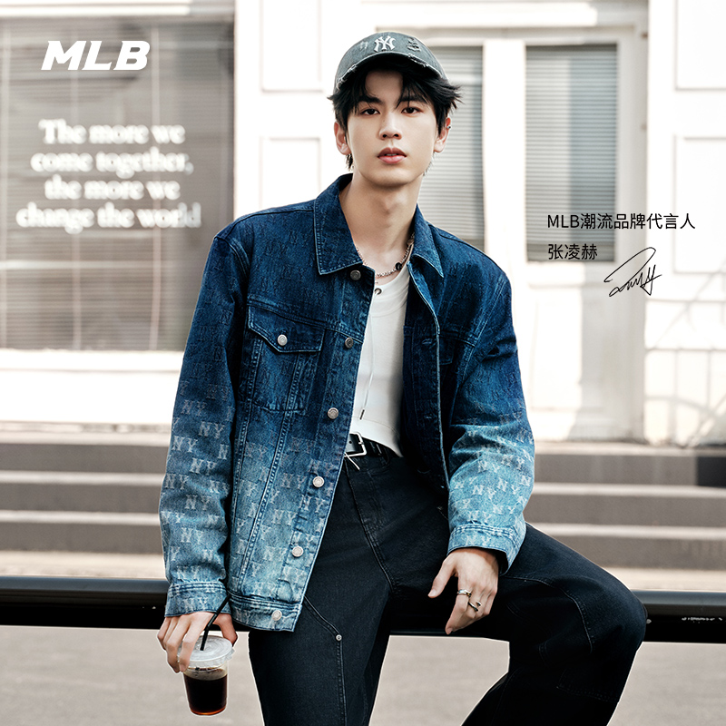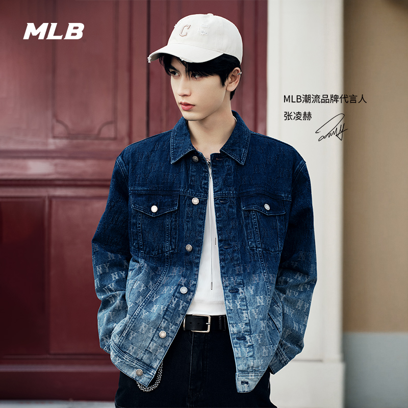 MLB官方男女复古老花拼接时尚牛仔夹克外套25春夏新款DKM05/DKM03