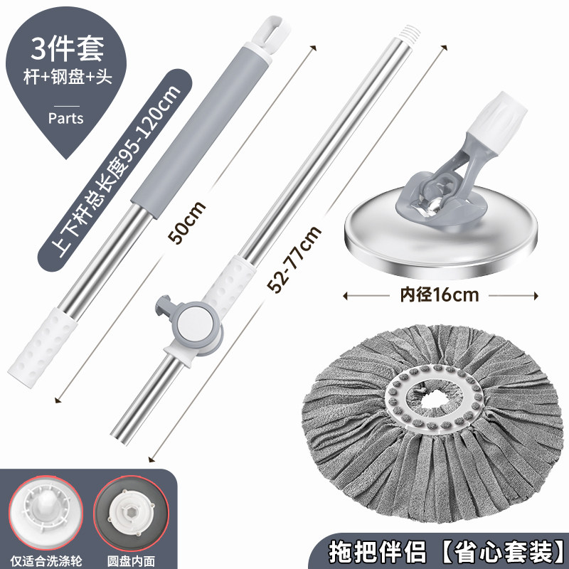 洁仕宝旋转拖把配件拖把杆不锈钢圆盘替换头旋转杆手压杆拖把伴侣