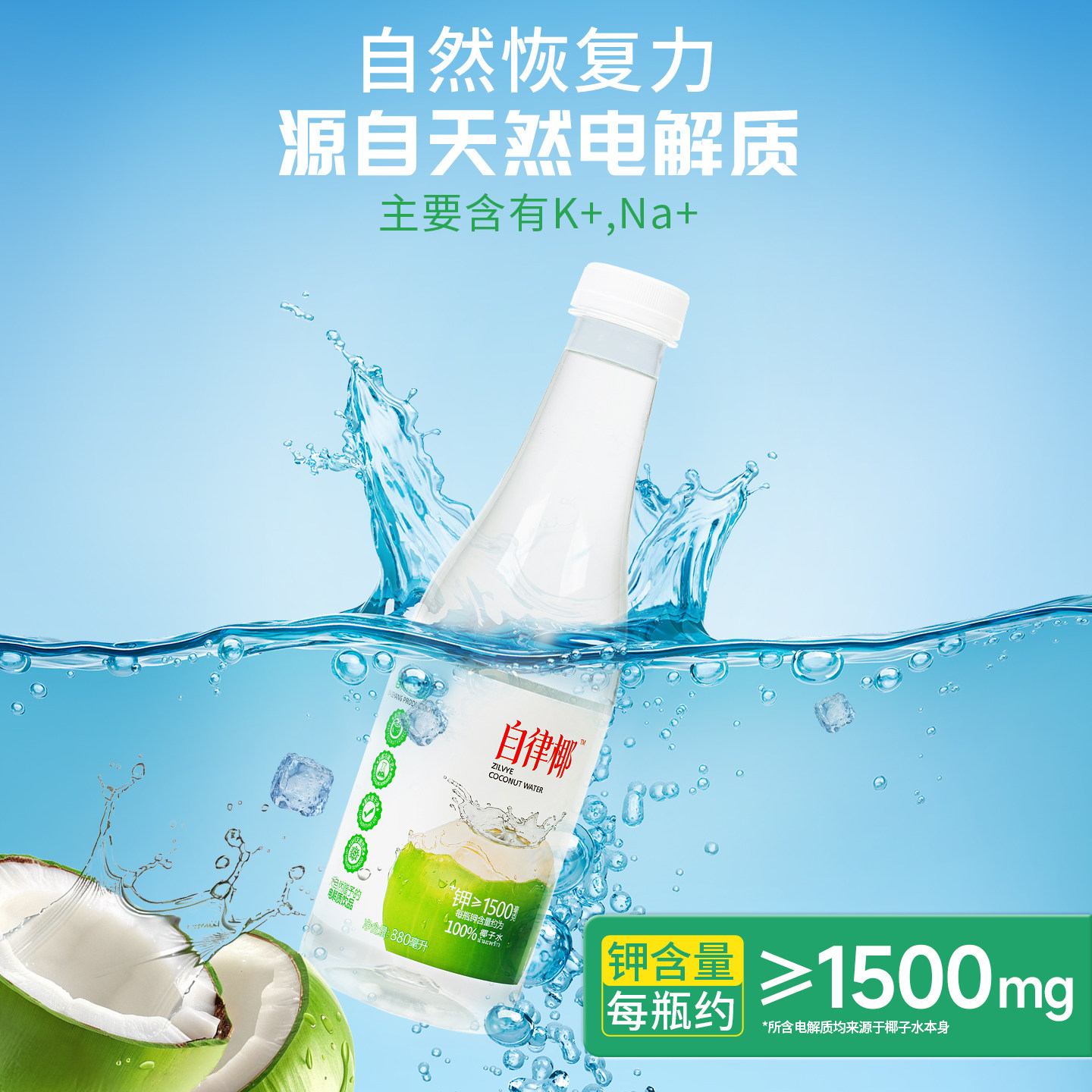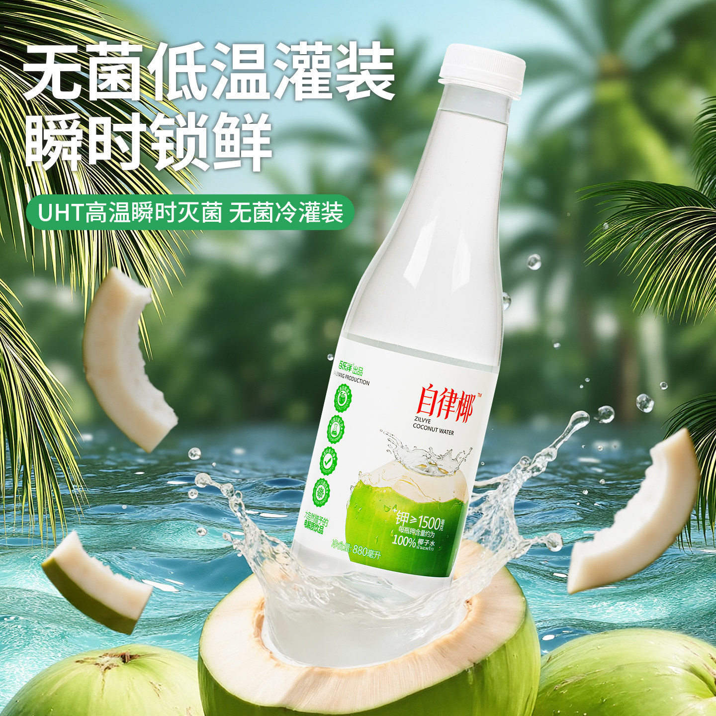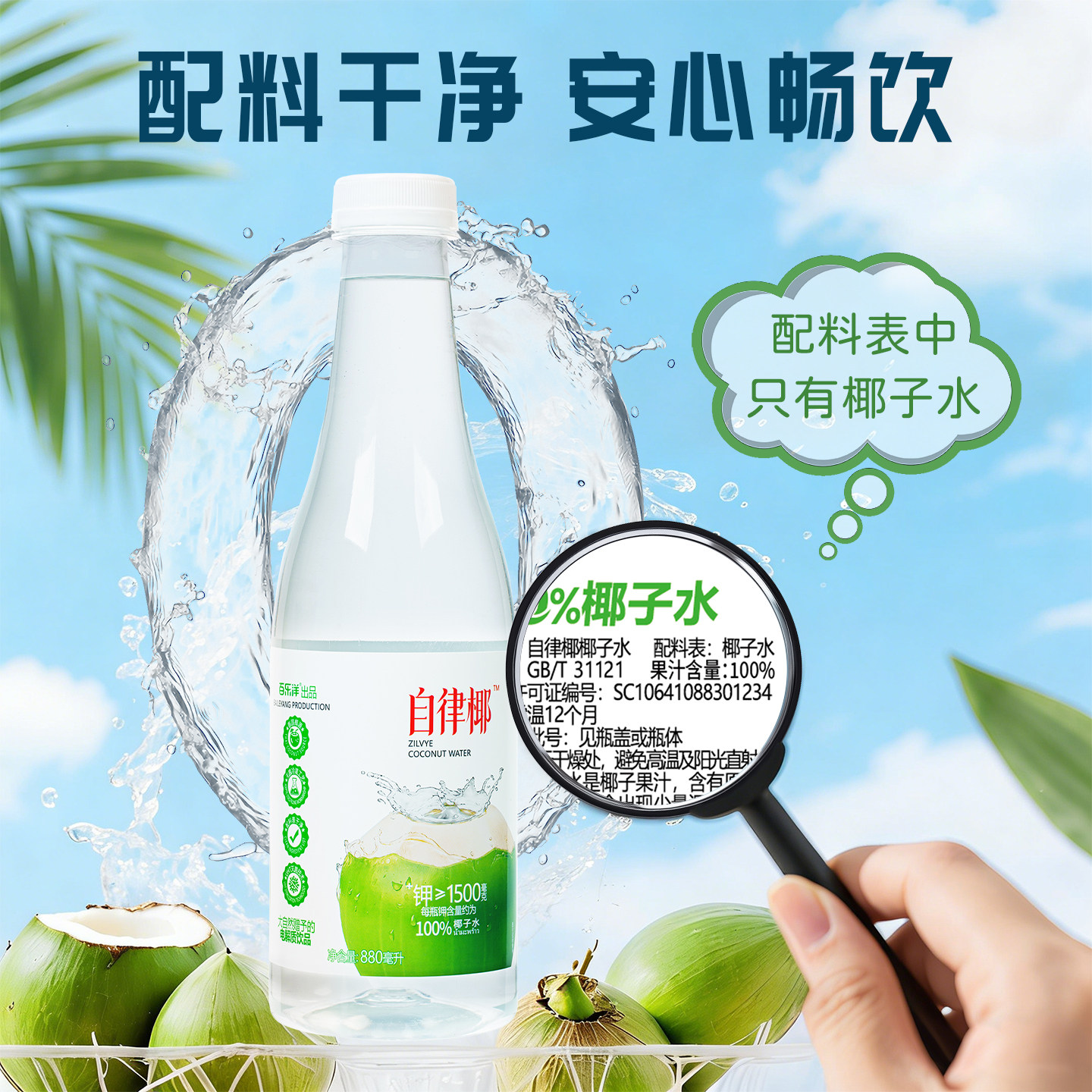 100%椰子水880ml*3瓶孕妇可喝0脂