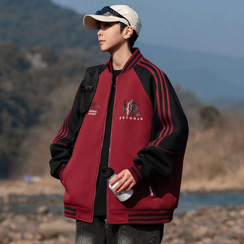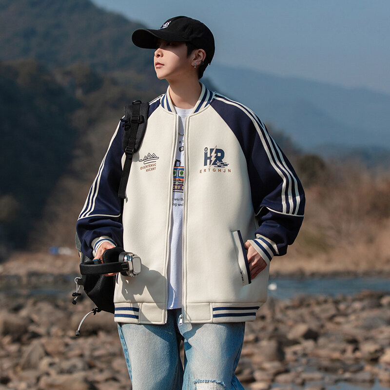 春季时尚棒球服男初高中学生美式潮牌运动开衫男孩大童春秋款夹克