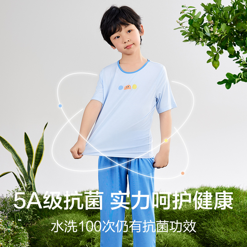 红豆儿童睡衣优可丝男童家居服套装女童宝宝抑菌新款春夏空调服薄