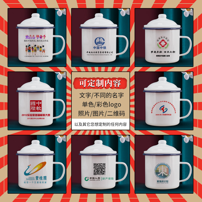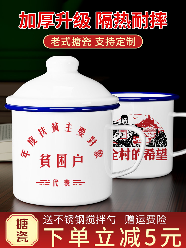 老式搪瓷杯怀旧茶缸子劳动最光荣带盖大容量水杯定制老干部泡茶杯