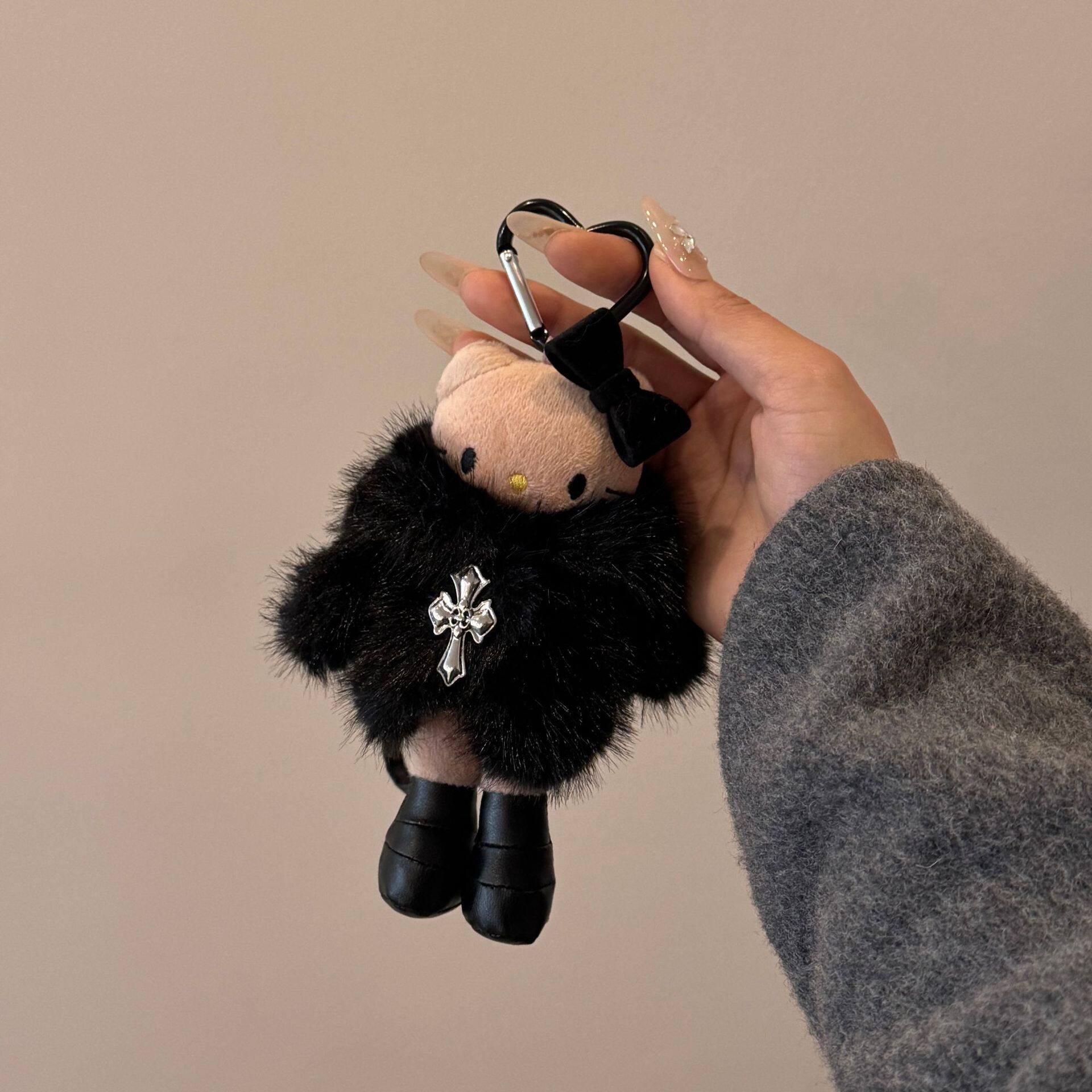 黑色高级感KT猫毛绒包挂件