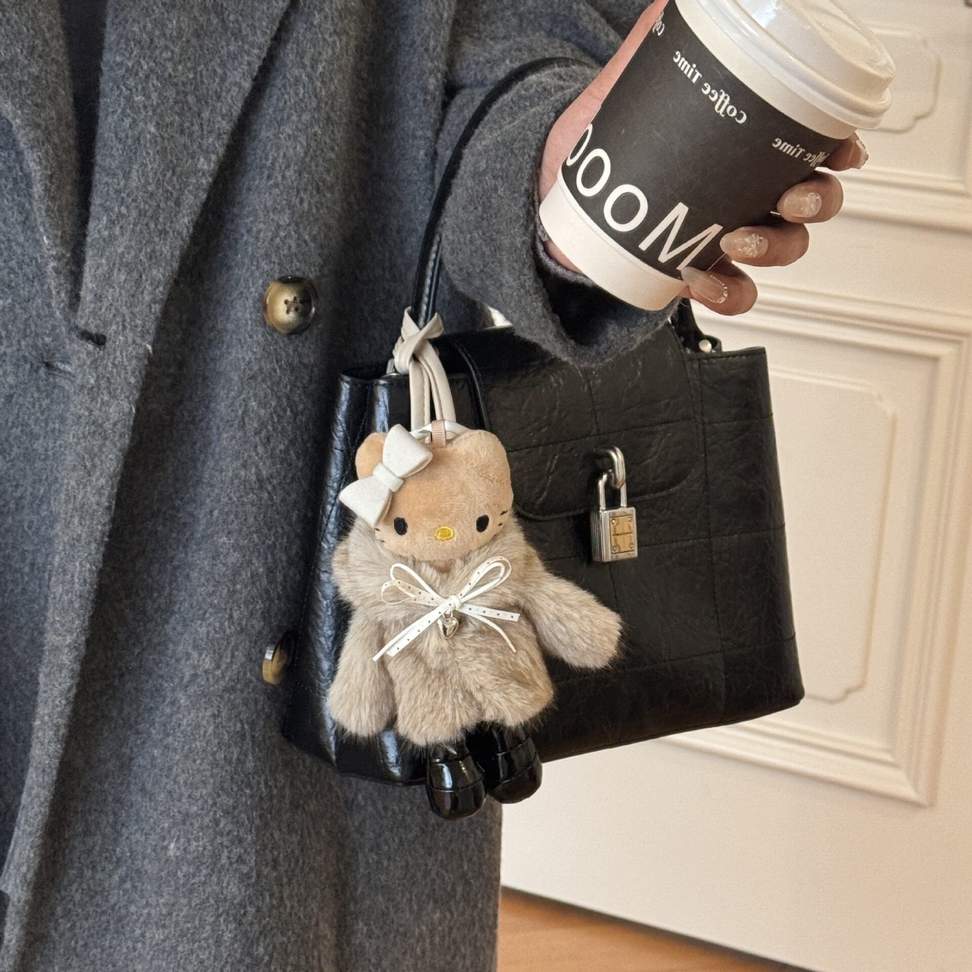 包包挂件女kt猫高级感秋冬百搭挂饰毛绒玩偶公仔黑皮kitty猫配饰