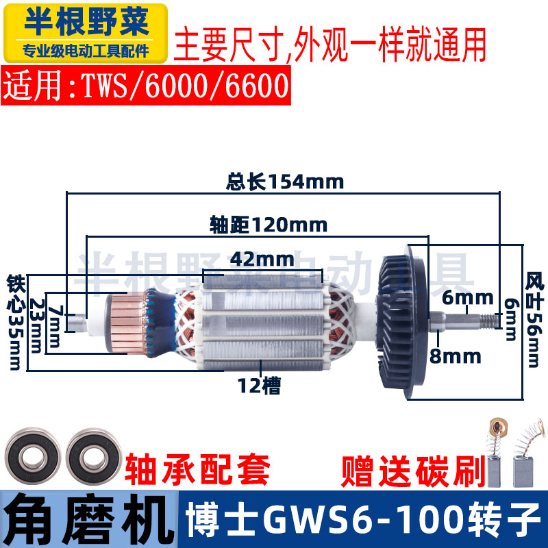适用博世GWS6-100 TWS 660 6700角磨机配件转子 碳刷 齿轮 开关