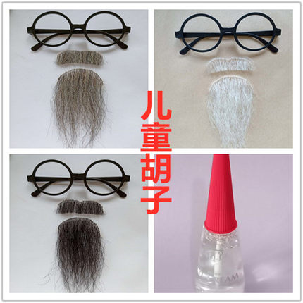 送镜框 白色儿童山羊粘贴胡 表演道具 演出老爷爷 化妆舞会假胡须