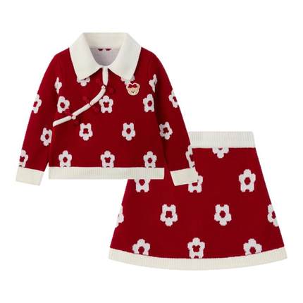 【新年】PawinPaw卡通小熊童装26年新款国风女宝宝毛织套装裙
