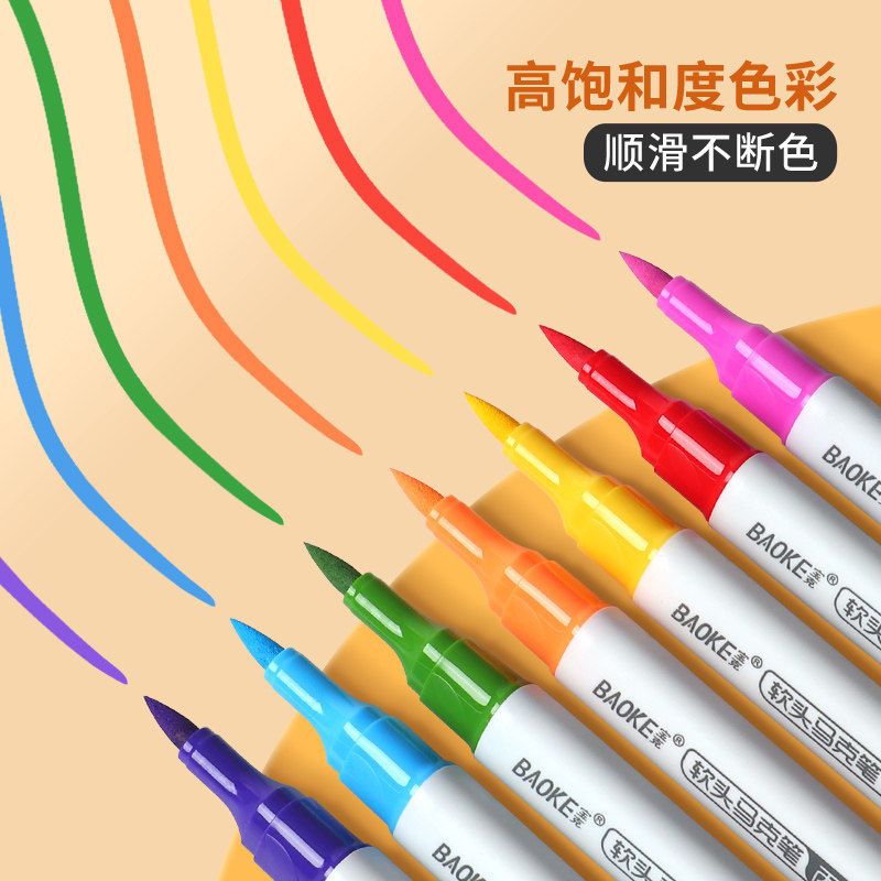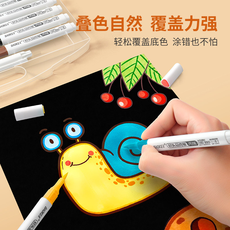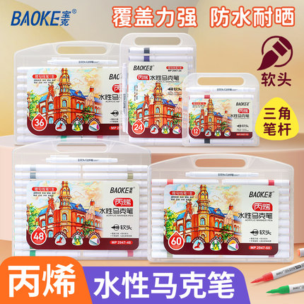宝克MP2947丙烯水性马克笔不透色可叠色学生专用儿童美术DIY彩色画笔芯水彩笔软头可水洗涂鸦绘颜料防水24色