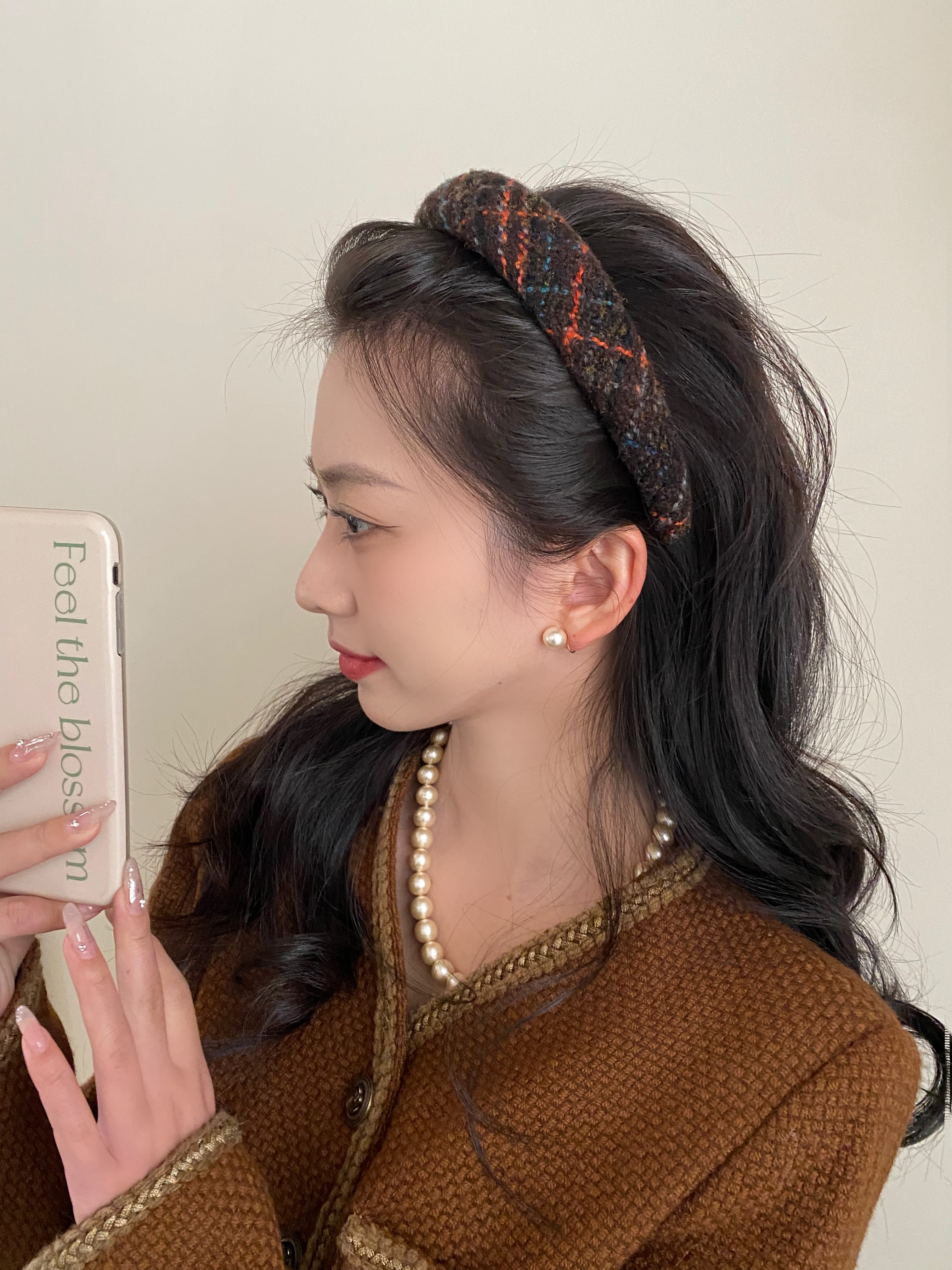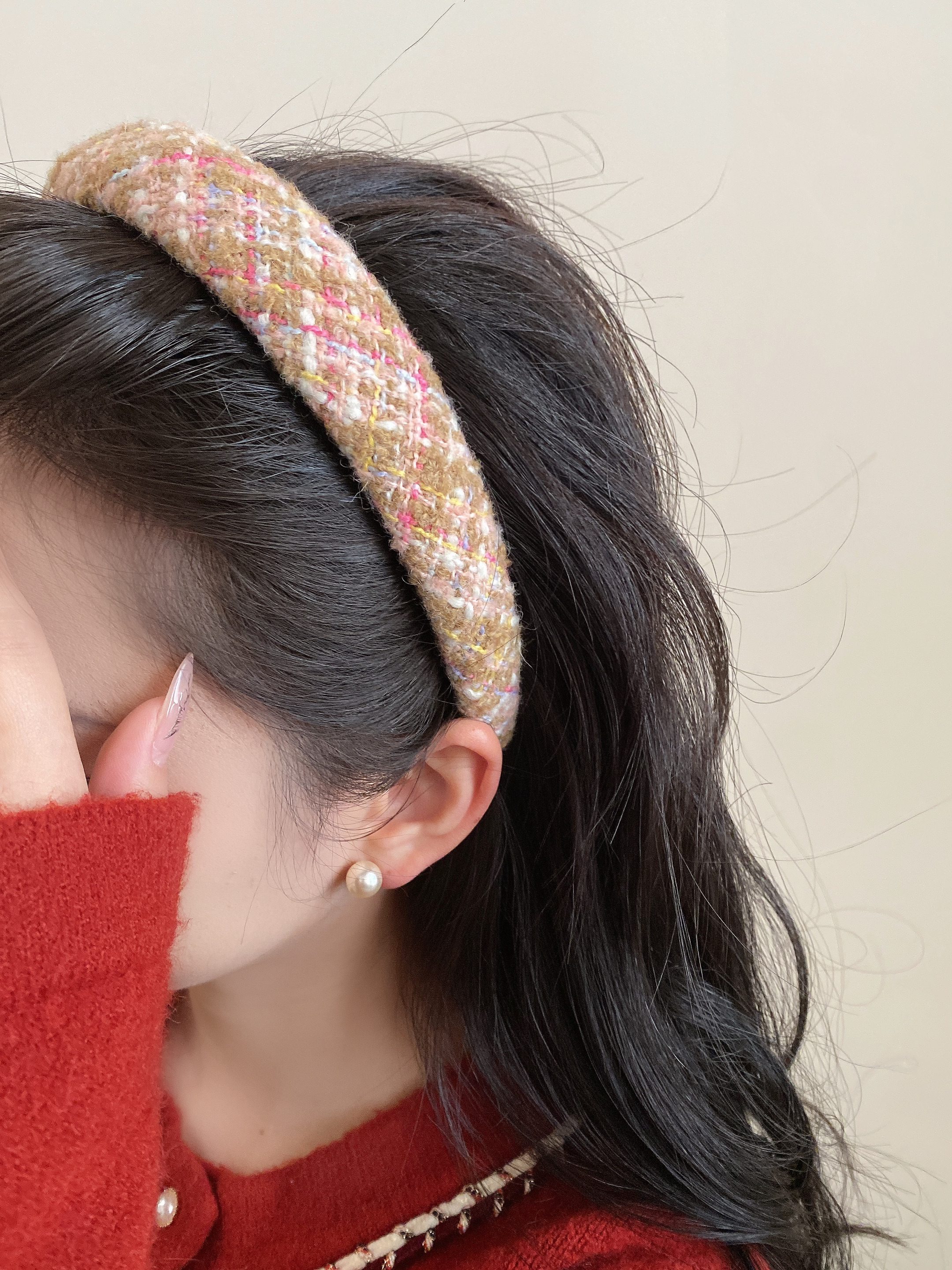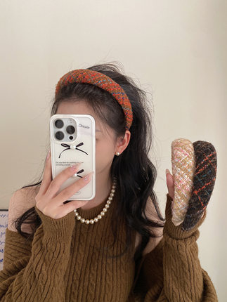 美拉德复古毛线发箍女2025新款高颅顶海绵头箍小香格子压发发饰