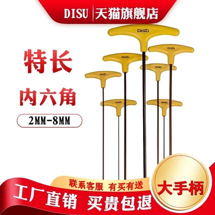 t型内六角扳手加长特长带手柄内六花T形六角2 2.5 3 4 5 6 8 mm号