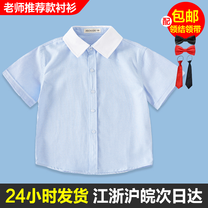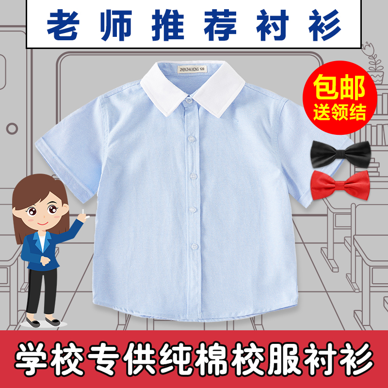 女童白色衬衫儿童短袖夏季蓝衬衣小学生表演出中大童女孩纯棉校服